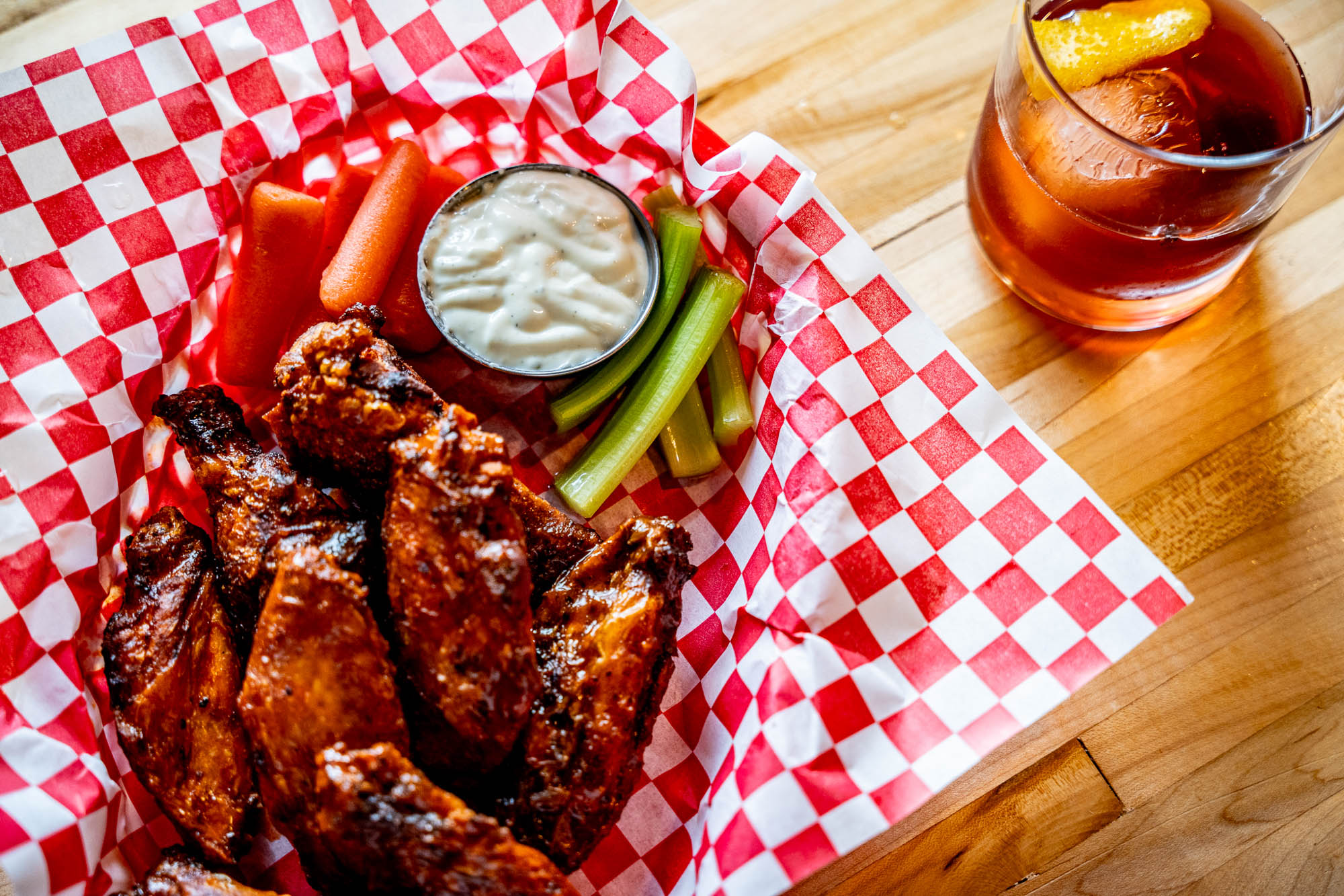 Our dough rises on yeast cultured from our own beer. Our pizzas bake over wood fire. Our wings, our burgers, our sandwiches — all from scratch, no shortcuts. Pull up a stool.